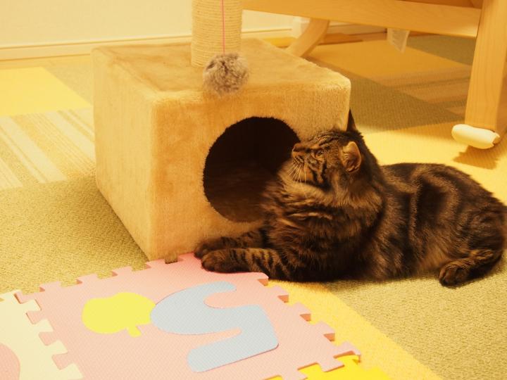 『ふぅ…ひと休み。遊びの時は、休憩も挟みながら無理がないように気をつけているよ。でも、あまり長く休憩しているとおとぅ達がお茶を飲みにリビングに行っちゃうから…立とうとする前にまた遊びモードに切り替えるんだ。