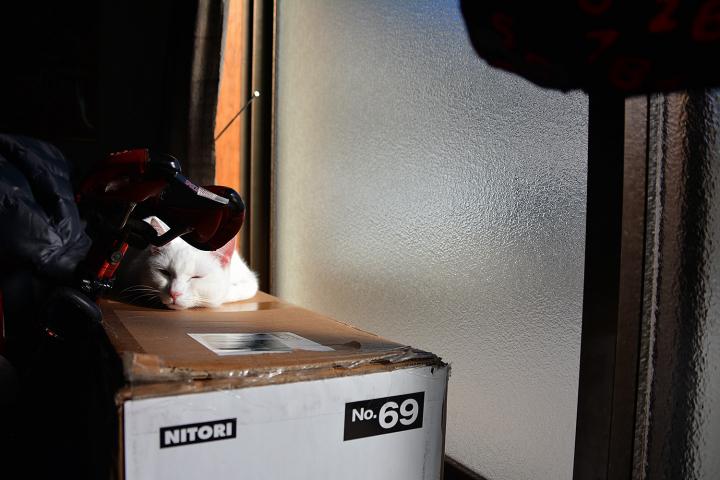 ベランダに出ると、ことのほか寒くて、風除けに私の隣に座りこむ。