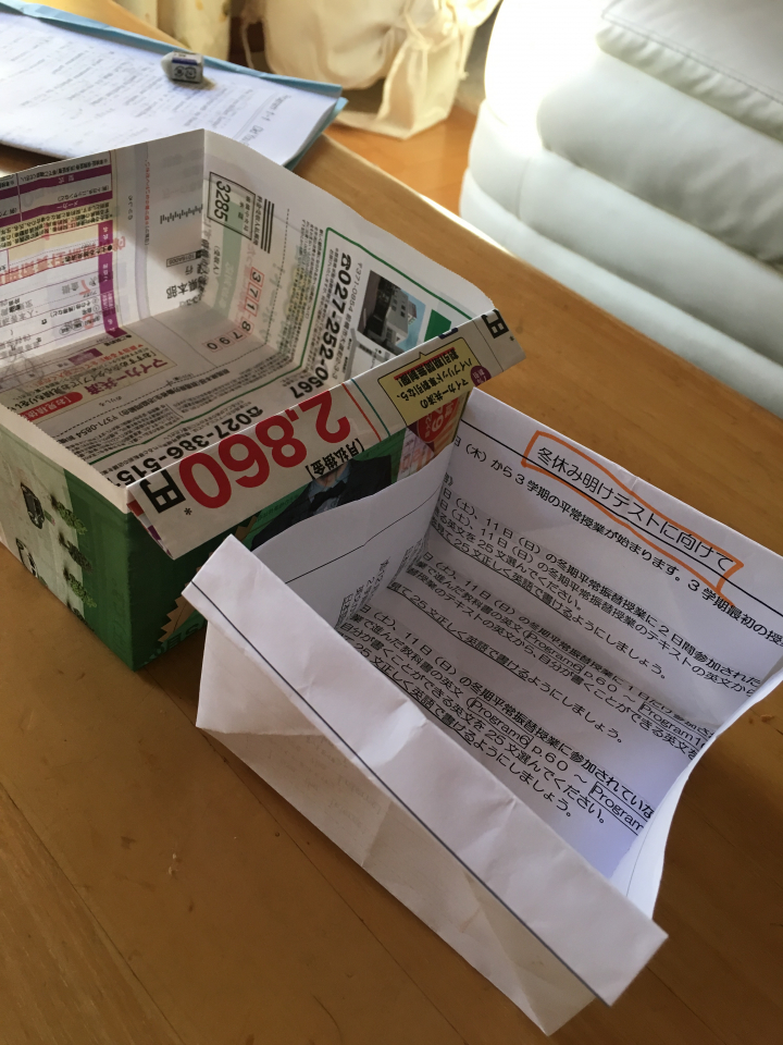 昔、おばあちゃんがよく作ったチラシを使用した簡易ゴミ箱(笑)\(//∇//)\