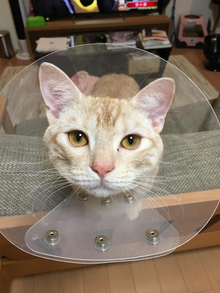術後の傷を舐めちゃうので、家事している間は時々エリザベスカラー装備。