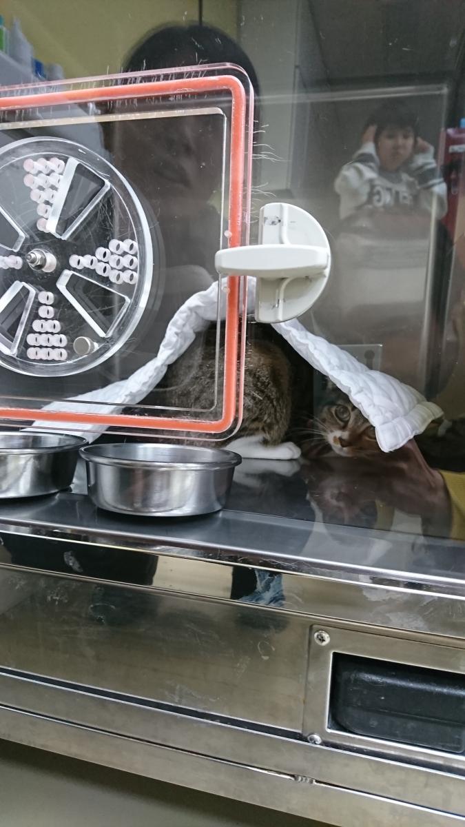 何故か床に敷いてあるマットに隠れてごはん食ってたらしいです(笑)