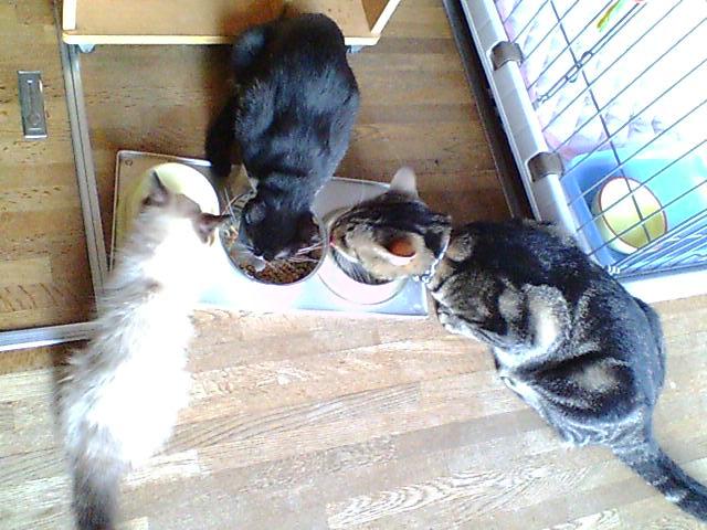 お腹が空いた子だけの食事タイム・・貝ちゃんも仲間入りしてます。