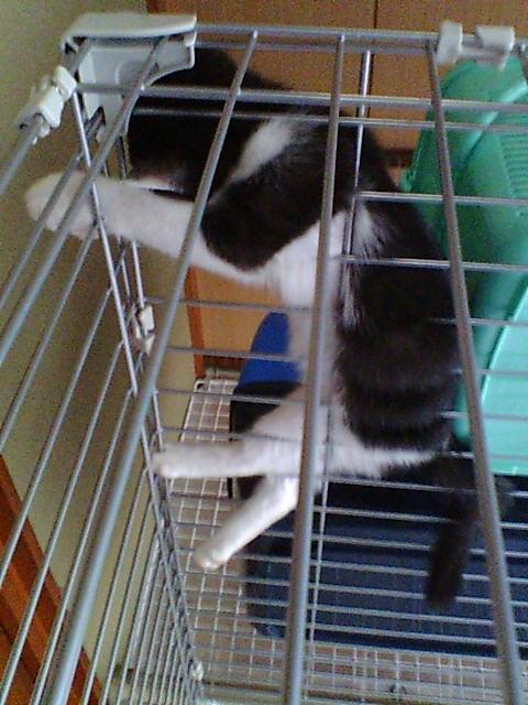 でも、まだ寝てる子達も・・なぜかケージの上に??降りれるの?
