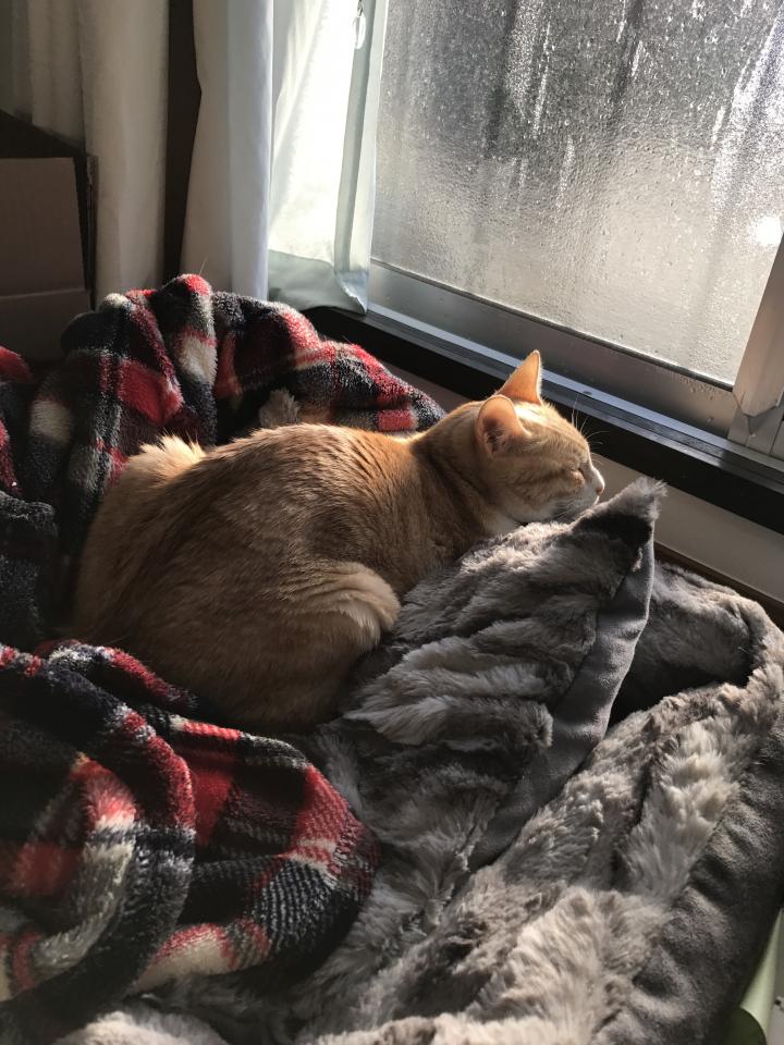 今朝から日向ぼっこで寝ています。