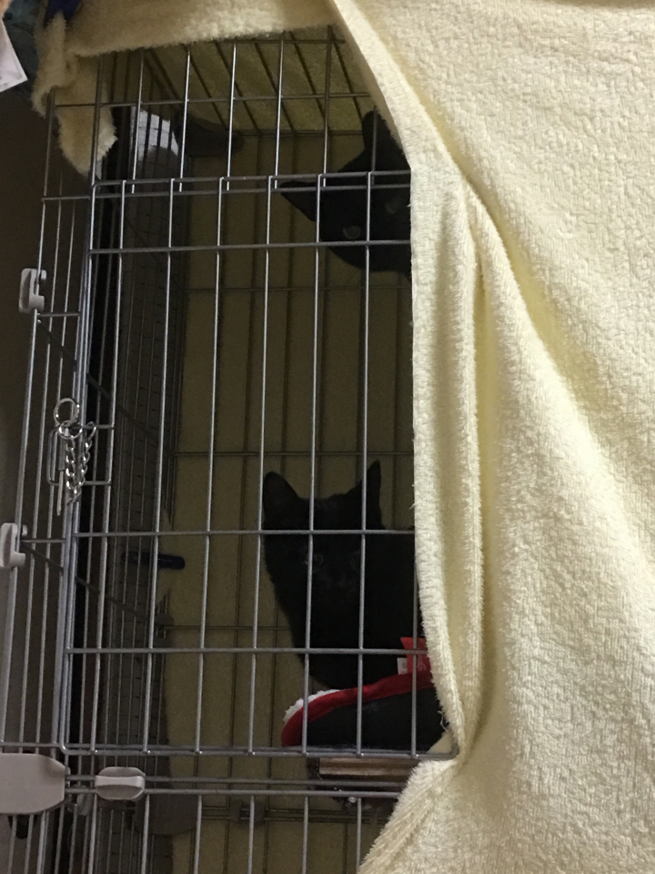 帰って来そうな時間になるとみずからゲージに避難…(*´ω`*;)