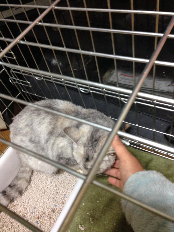 少しずつゲージの中の生活に慣れ、人の前でも食事をする様になり、体を撫でる事が出来る様になりました。
