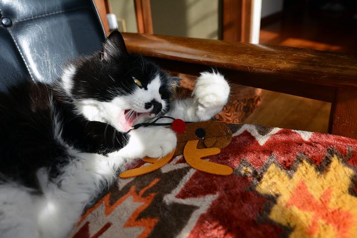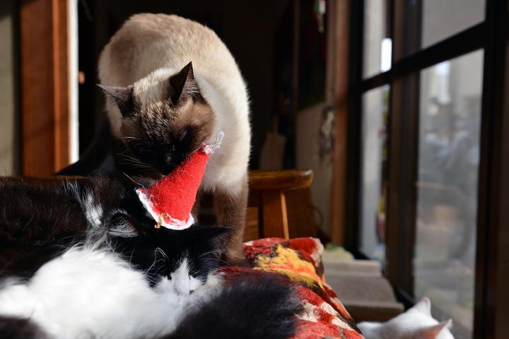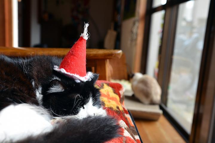 レプン姐さんに、2年前に100均で購入したサンタ帽をかぶせてみる。