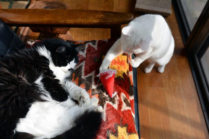 ゴム紐が気に障ったようで、しきりにゴム紐を噛むレプン姐さん。