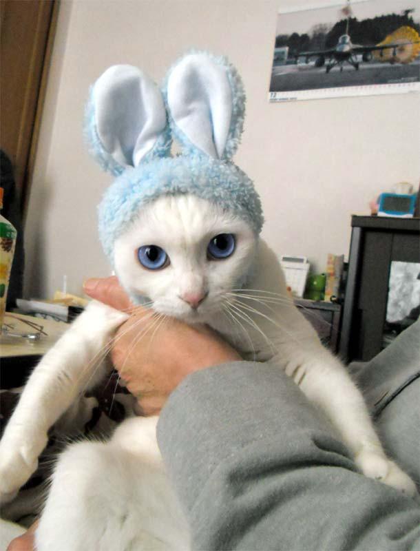「にゃ~!」(今度はウサギ耳ニャンか!もう~さっさと撮るニャン!)