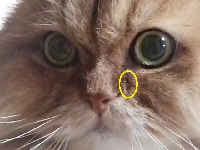 少し前からムクのお顔にカサブタがありまして。
