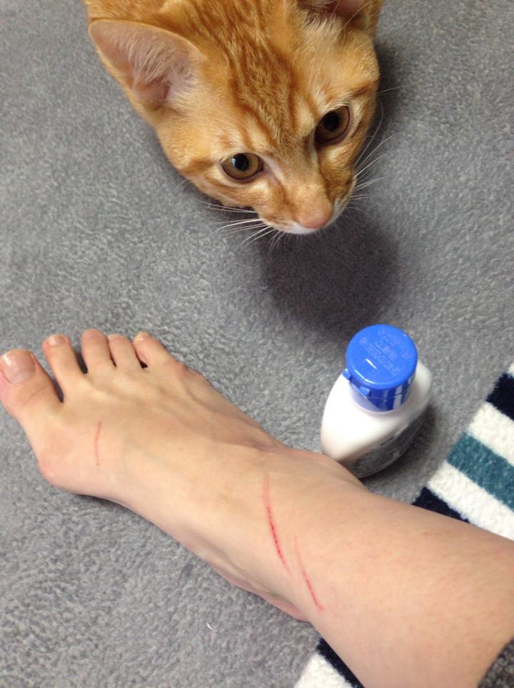 これは引っ掻き傷ではなく、噛まれ傷です。 噛み癖なかなか治りません👣