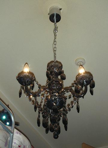 最近、新しく照明を探してる友達が、私のシャンデリアはどんなもんか写メ撮って