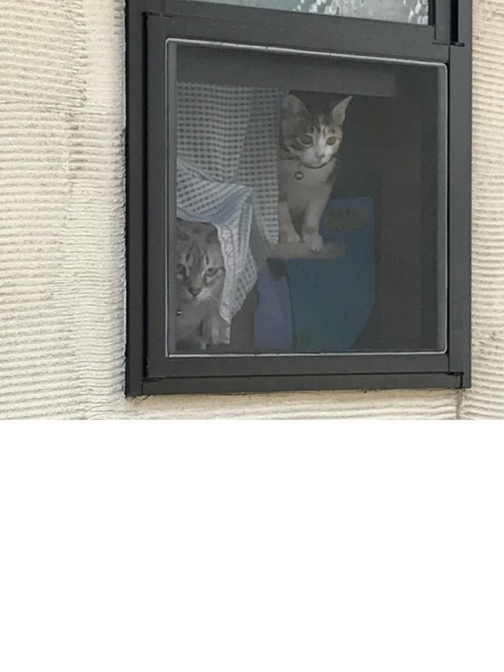 おにいさんが仕事で行った場所が、お兄ニャン&ユメちゃんハウスの近くだったため、時間がない中、前を通ったところ、2ニャンがちゃーんと窓辺にいてくれたのです。