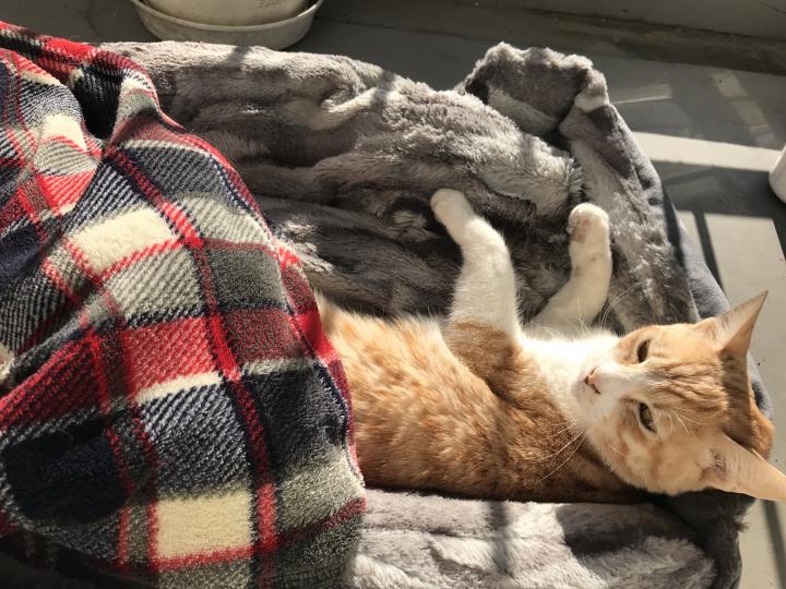やっとのことでベットにのせて日向ぼっこさせてます。
