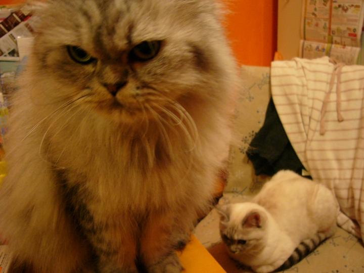 お寺さんが引き取りにきてくれたとき、ブルーだけがお坊さんのひざに乗り、桜を何度も見て「おかしいな?」とゆう顔をしていた、桜に育ててもらったマディも発作のときは近づかなかったのに、あいさつをしにのぞきにきた。