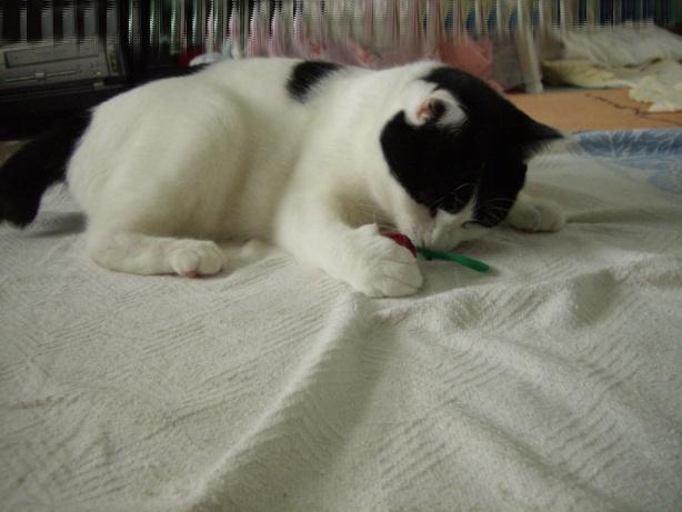 大好きなぽんぽんみたいなボールを放り投げたら、すばやい動きで飛びつきました!