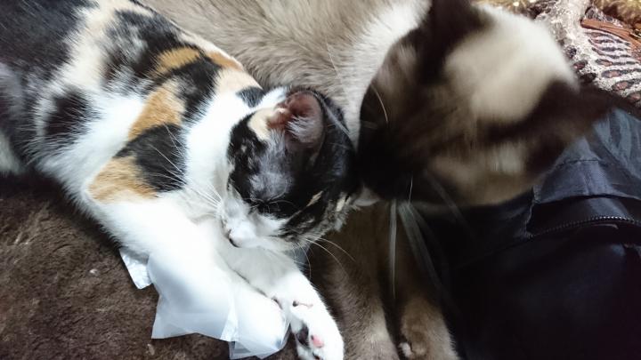 大福はやはりこちらのにゃんもっくにヘソ天。