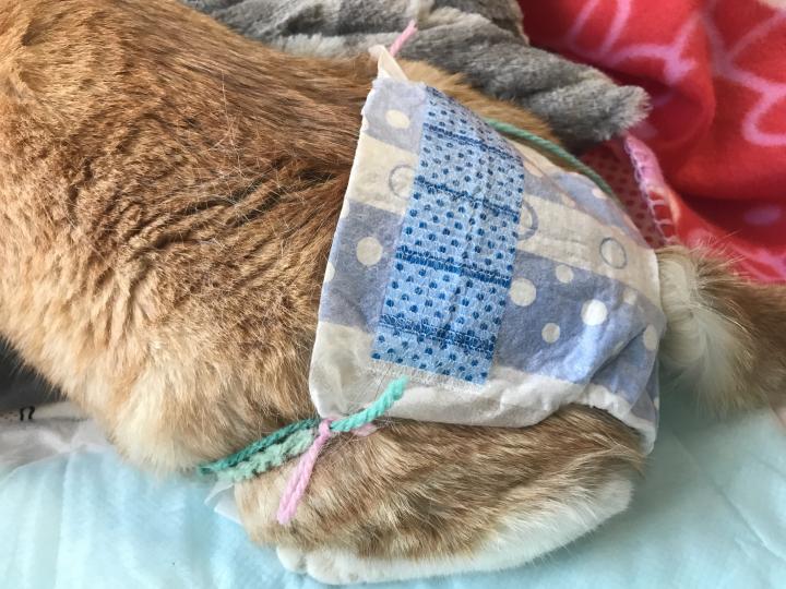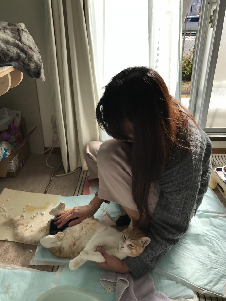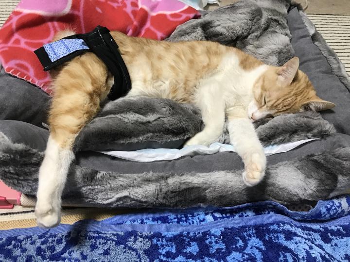 毛づくろいできないので、おなか付近も黄色くなってしまいオシッコ臭いww