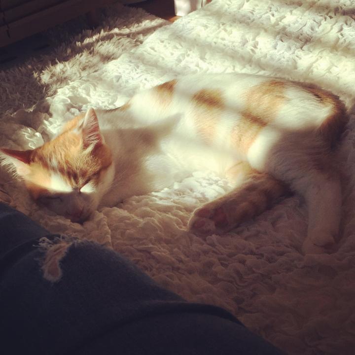 嬉しいこともありました。初めて私の太ももをフミフミしてくれたんです。ゴロゴロ付きで!