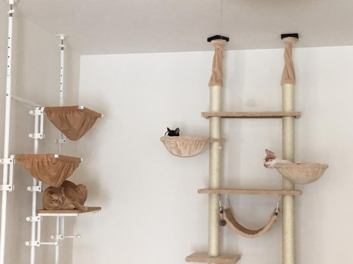 にゃんと、キャットタワー2台!3匹で2台!なんつう贅沢。