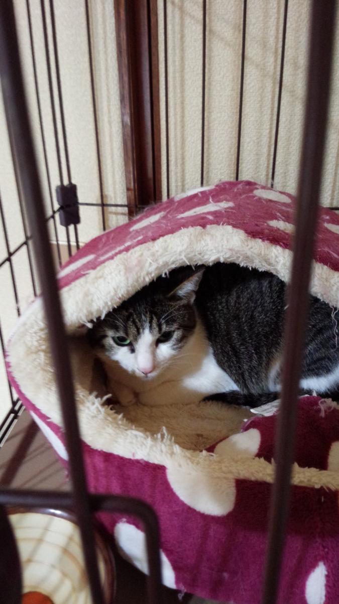 いつもはドーム型の天井を潰して上で寝てるのに。籠城中。