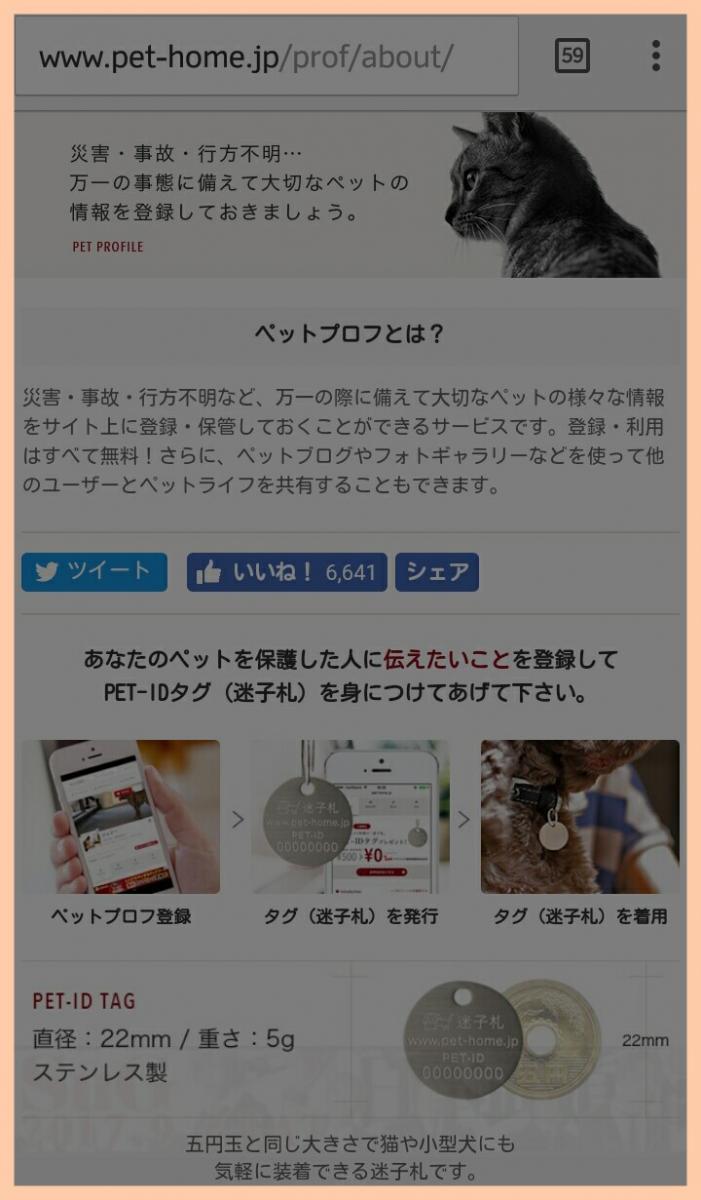 で、犬猫限定で、登録したペットの迷子札を無料プレゼントというサービスをされてます。