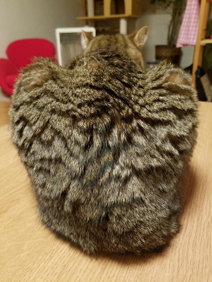 松ぼっくりみたいで、なんかイヤ・・・すぐに撫でて毛を滑らかにしてます😁