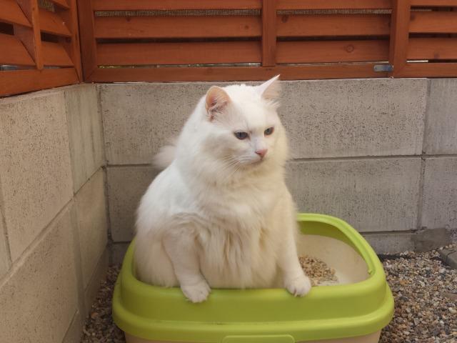 ↑ サフィーは、土間に置いてあるトイレでゆったりと・・・(2015年 ネコ写投稿済み)