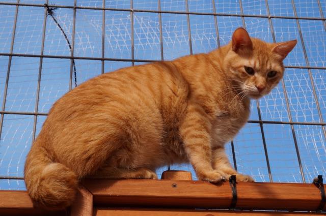 ↑身軽な猫は、ルーバーフェンスを登るんだけど、高さがあるので、「行きはよいよい