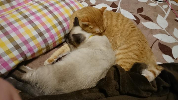 ゲーゲーってもまんま餌だから片付け(食べる)担当はトラだったけど、リンが来てからリンと交換したらしい。