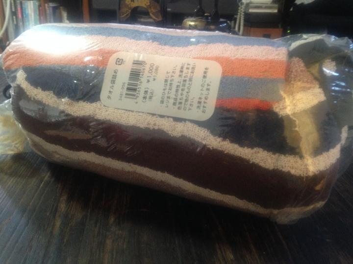 袋をギュッと引っ張って伸ばしバスタオル4枚を1000円でゲット!