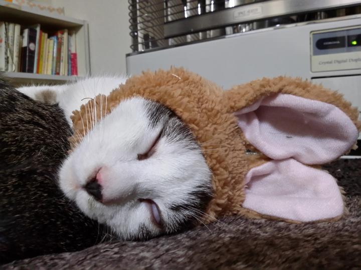 ねこうさぎちゃんかぶりながら白目( ´艸`)