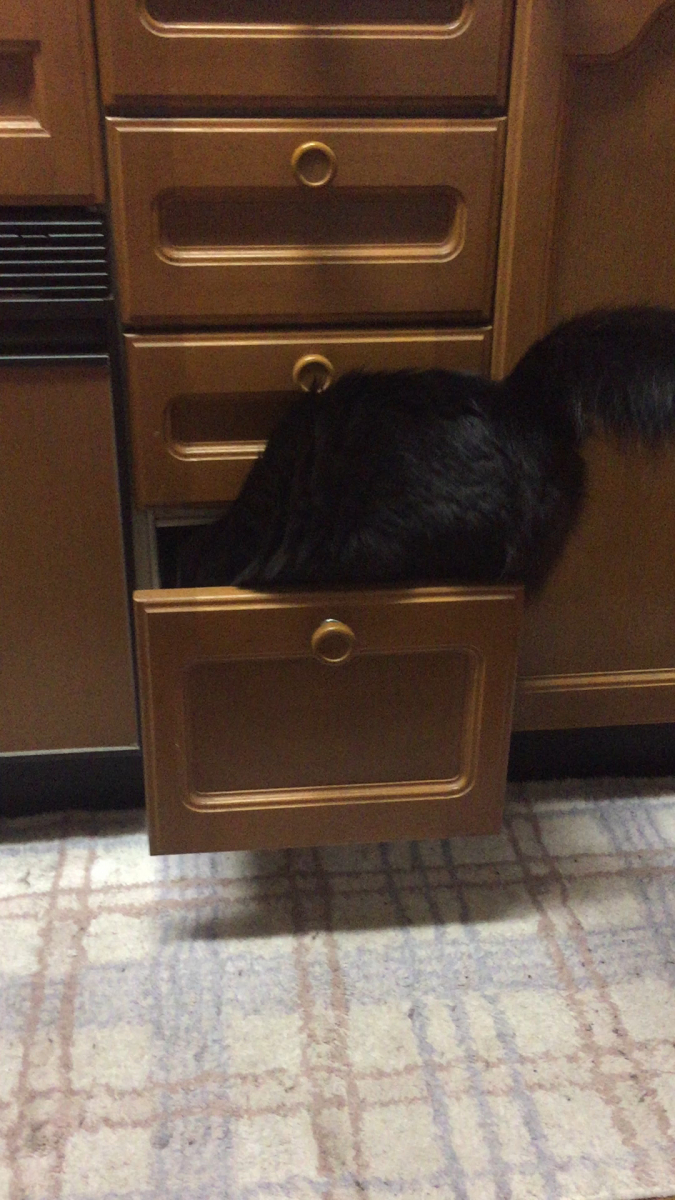 基本的に中に入るのが楽しいだけでタオル以外を荒らした事はないんですが、さすがに調味料が入っている戸棚はマズい!