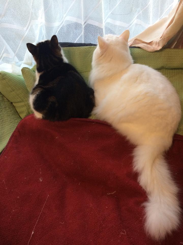 お猫達は家の中でぬくぬくです。