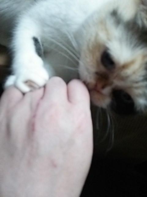子猫なんですけど、爪を切った後に保護主さんにお願いしたんですよ。