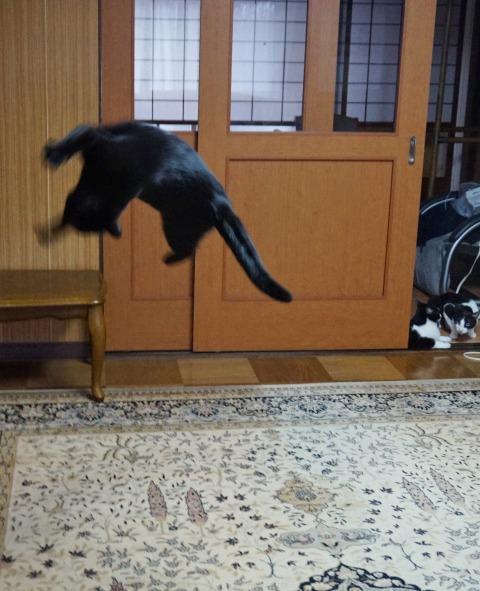 ↑ メルのジャラシ遊び 空中回転中 遠くで見学してるのはミル&ヒカル