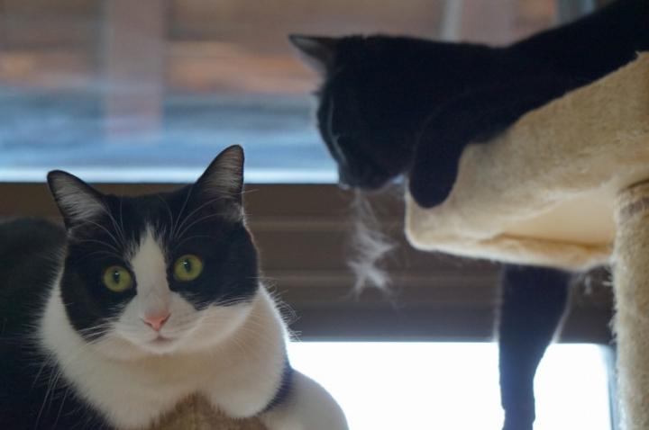 不思議そうに窓の外を眺めています。 上)みーちゃん 下)ミル