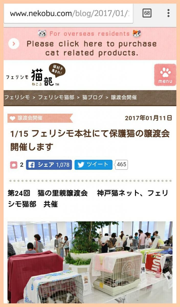 先程、このイベントを偶然知り、アクセスしやすい場所での譲渡会なので、三宮に遊びに行かれており譲渡会にも興味をお持ちの方もいらっしゃるかと思ってアップしてみました。