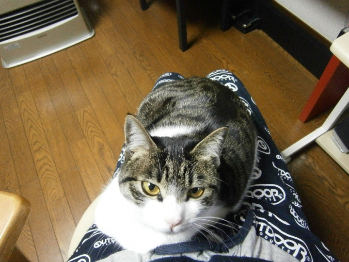 パソコンに向き合ってるとちょっかいを出してきて恐る恐る腿の上に陣取ります^^♪