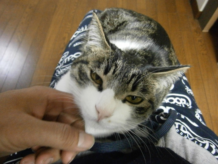 でもなぜかこのシチュエーションだとアゴをナデナデさせてくれるのです♪