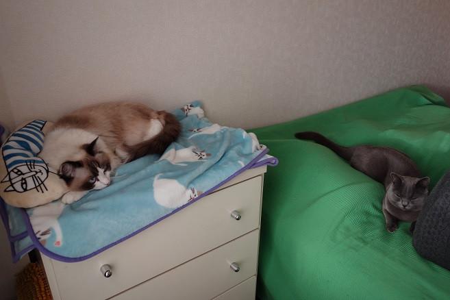 3ヶ所あるホカペを渡り歩いてぬくぬく寝てるケイト。