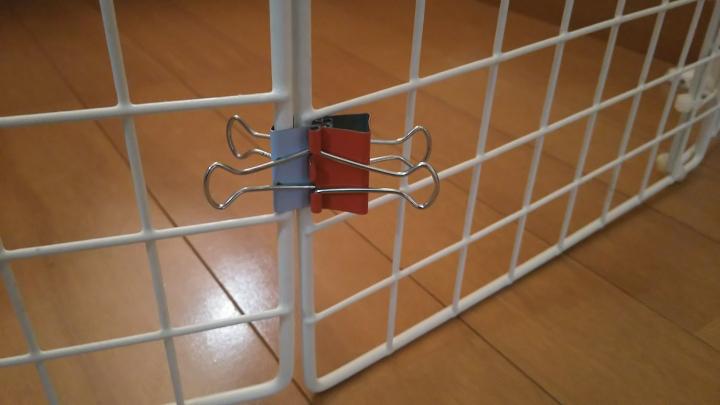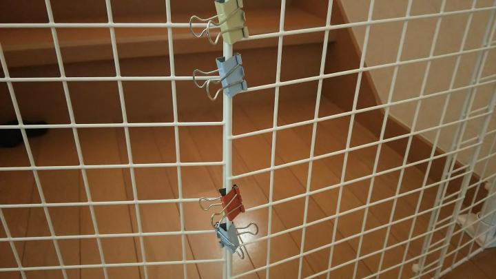 ピースが2階に行かないように階段の所に突っ張り棒&ワイヤーネットをして