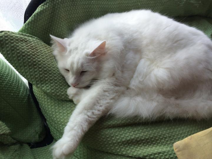 寝てる姿は、普通の白猫っぽいです。