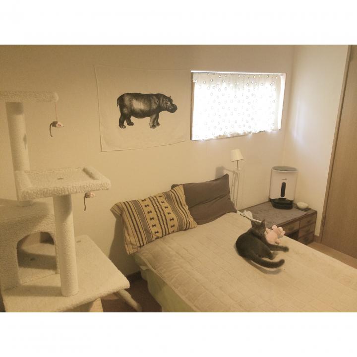キャットタワーやルークのトイレ、給餌機などいろんなものがあって、それらの配置で悩む…