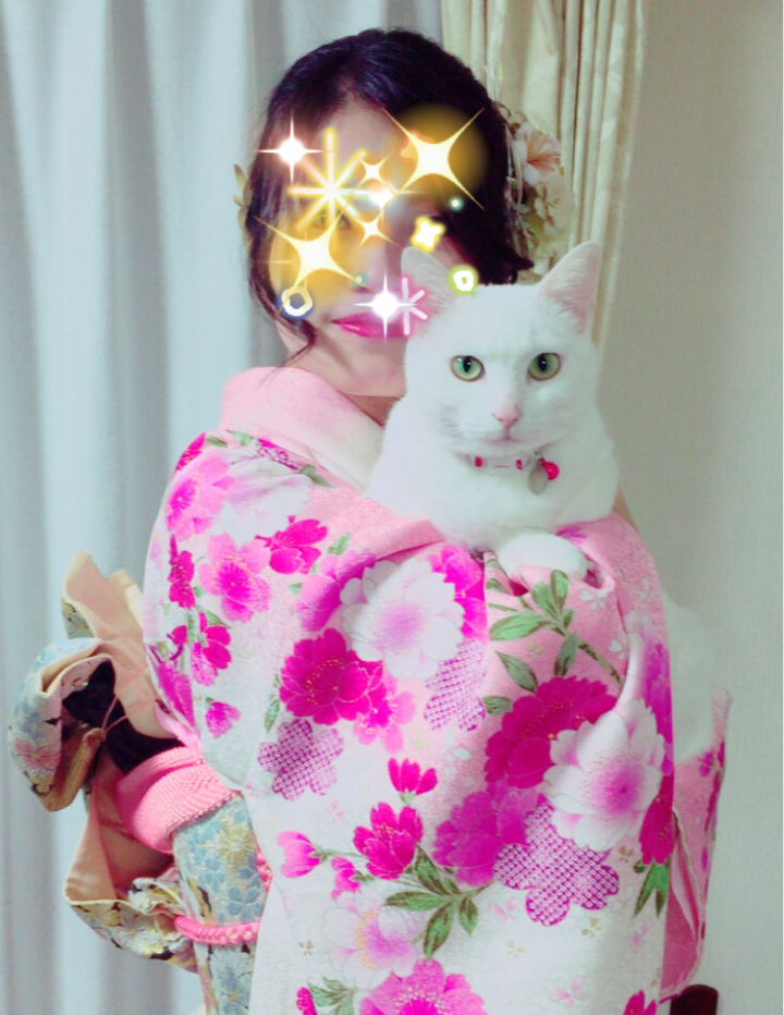 おまけで成人式を迎えた長女と長女が保護したポンちゃんです。