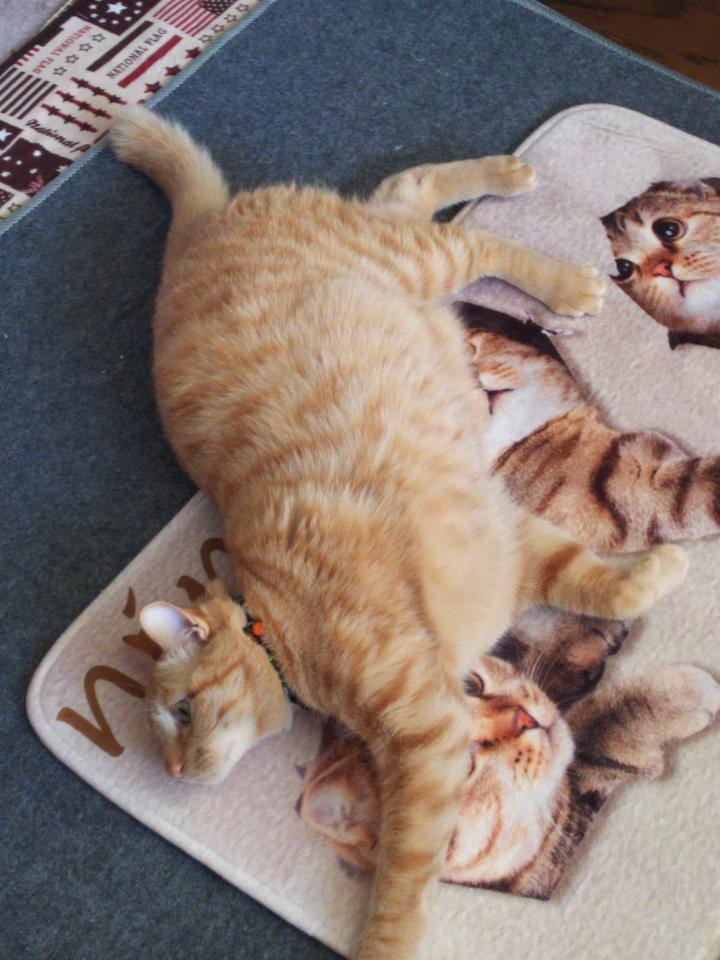 最近、このマットの上でむぎがお昼寝するようになりました。