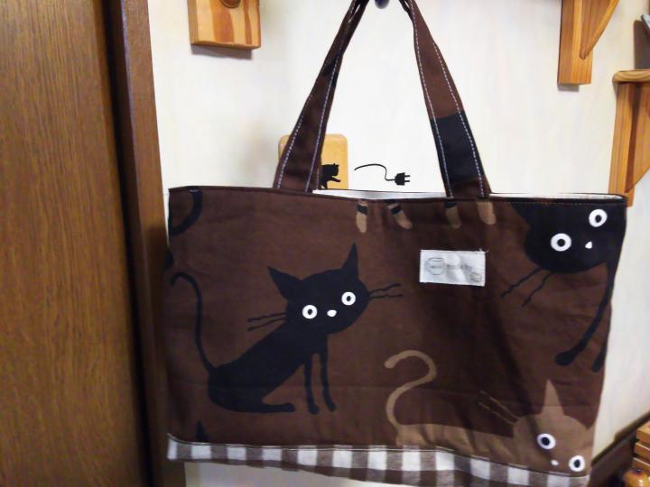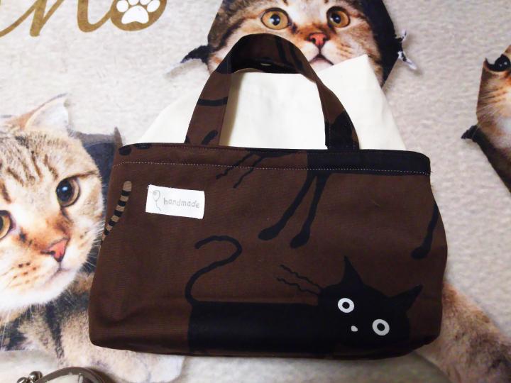 可愛い猫柄の生地も発見したので初心者🔰の私も頑張ってトートバックと巾着トートバック作ってみました