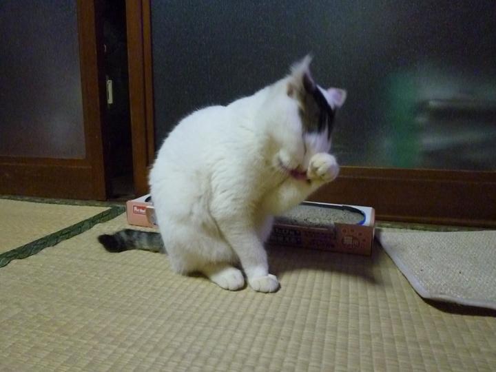 もうお腹いっぱいになったみたいで、顔を舐め始めました。