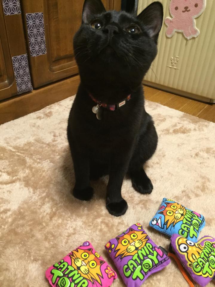 ナゼだか?オモチャで遊んでいると、必ず咥えて私の足元でケリケリ♪
