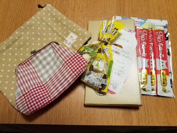本命のがま口だけでなく、ポーチやおやつ、ちゅ~るまで、お手紙を添えてくださいました。